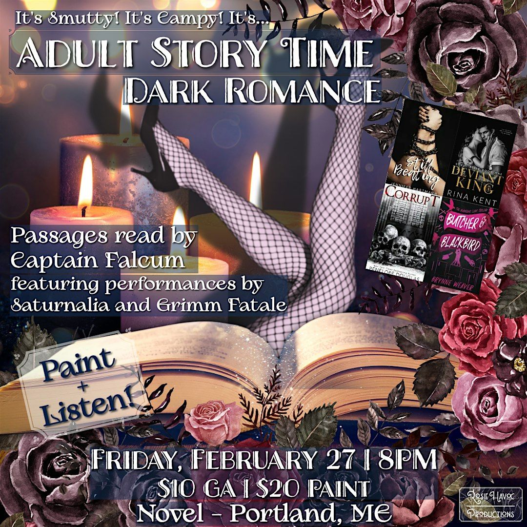 Join our host Captain Falcum as they do dramatic readings from dark romance novels and short stories. In between each reading, featured performers Saturnalia and Grimm Fatale will bring the drag and burlesque performances!