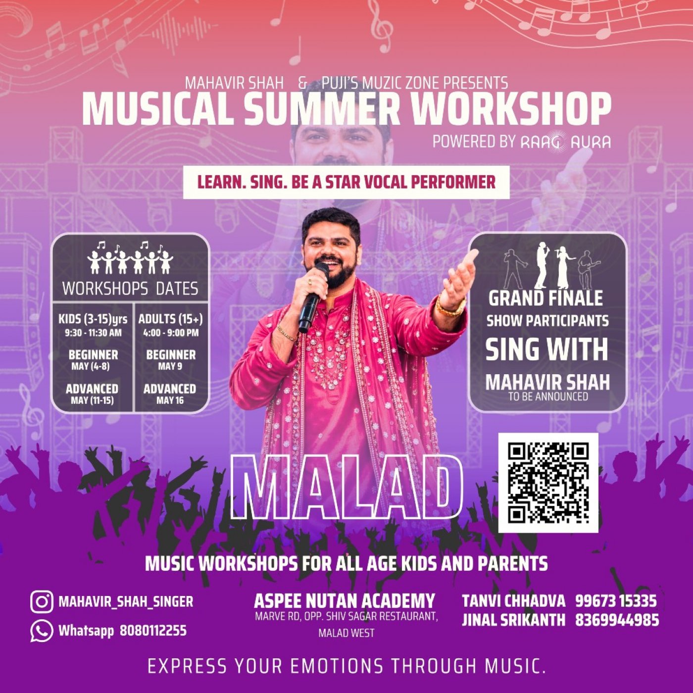 Join Mahavir Shah’s Adults Voice Culture Workshop where music meets confidence, expression, and performance. Whether you are a beginner, working professional, homemaker, music lover, or someone who always wanted to sing but held back due to lack of confidence, this workshop is for you.