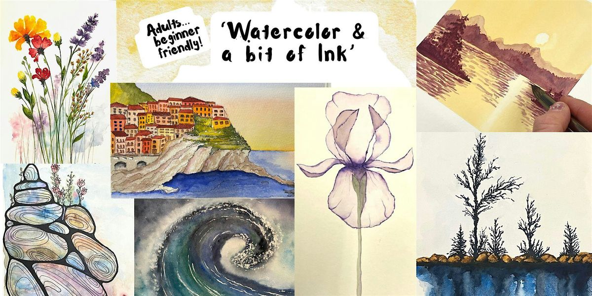 In this beginner-friendly class, you will develop creative skills, learn new techniques, & stimulate your imagination as you express yourself with watercolor, even adding a bit of black ink pen in a couple of projects. We'll go step-by-step. NO CLASS 3/18 and 4/1.