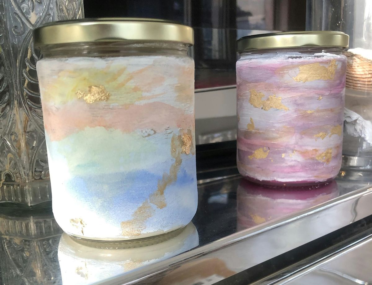 - One 13 oz soy candle in your hand-painted jar with a gentle wood wick