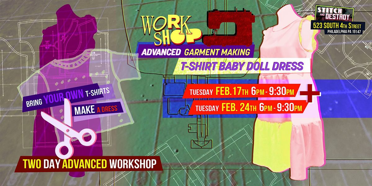 STITCH AND DESTROY owners, Haven and Corey, will instruct you in the various steps of sewing a baby doll dress from your pre-loved t-shirts. Patterning, cutting fabric, sewing with knits, adding gathers, and garment construction will be covered.