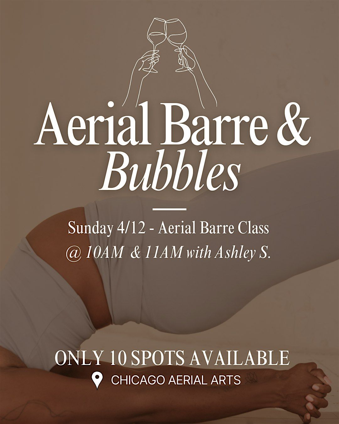 Lift, lengthen, and light up your strength in this playful Aerial Barre experience at Chicago Aerial Arts. We’ll blend grounded barre work with supportive aerial elements to sculpt, tone, and challenge your balance. All set to an upbeat, feel-good playlist. After class, stay and sip some bubbly, snap a few photos, and connect with your community. It’s the perfect mix of sweat, sparkle, and social time.