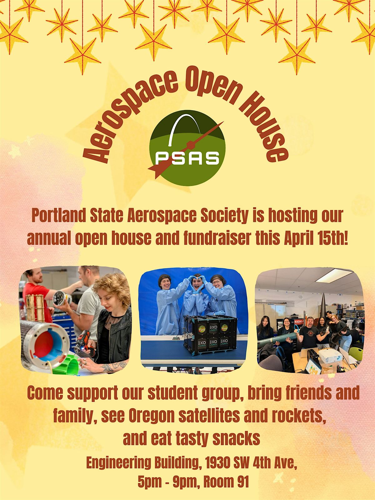 Our open house is also on the PSU Spring Day of Giving, so it’s also our annual fundraiser and a major source of income for our student group! Your donations provide opportunities for our university students and the projects that help to boost their future careers and help contribute to open-source aerospace for everyone around the world.