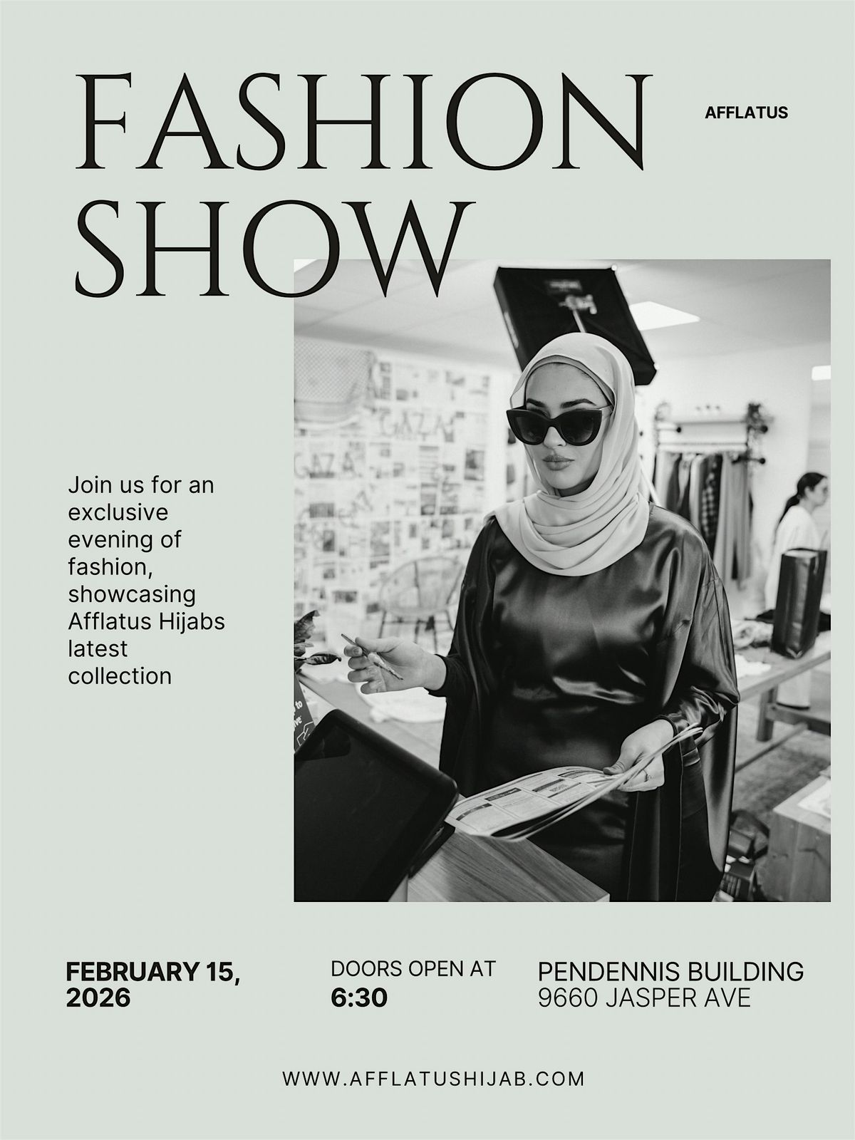Join us for an intimate and powerful evening as Afflatus Hijab presents its latest collection at a fashion show in the heart of downtown.