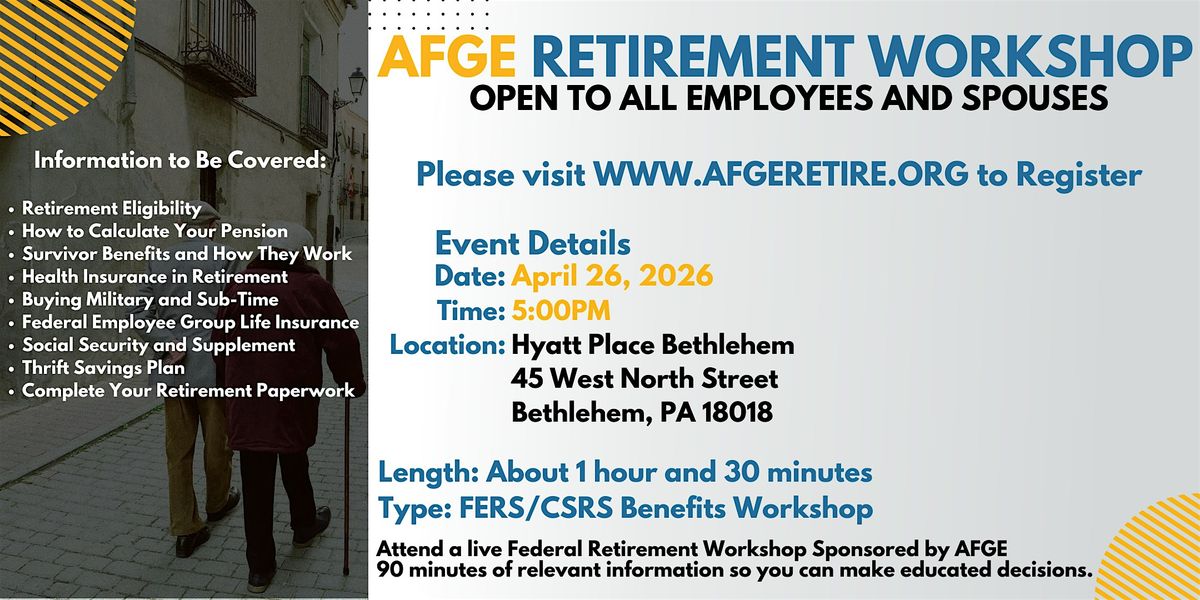 Please Register at WWW.AFGERETIRE.ORG as there may be limited seating.