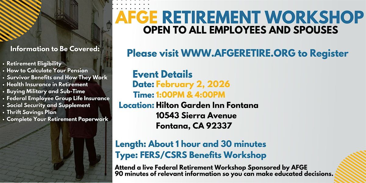 Please Register at WWW.AFGERETIRE.ORG as there may be limited seating.