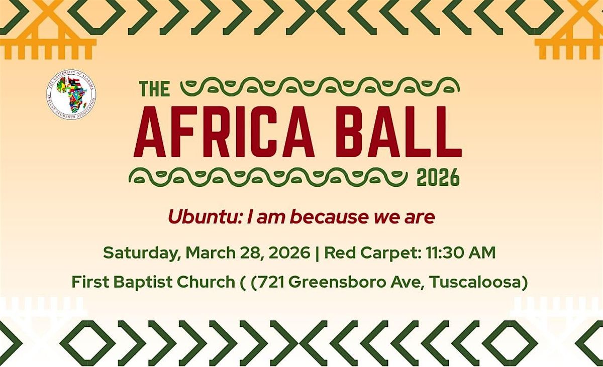 Join the African Students Association at The University of Alabama for Africa Ball 2026, an elegant cultural gala inspired by the African philosophy of Ubuntu — “I am because we are.” This year’s theme celebrates community, shared humanity, and the collective strength that shapes our individual journeys.