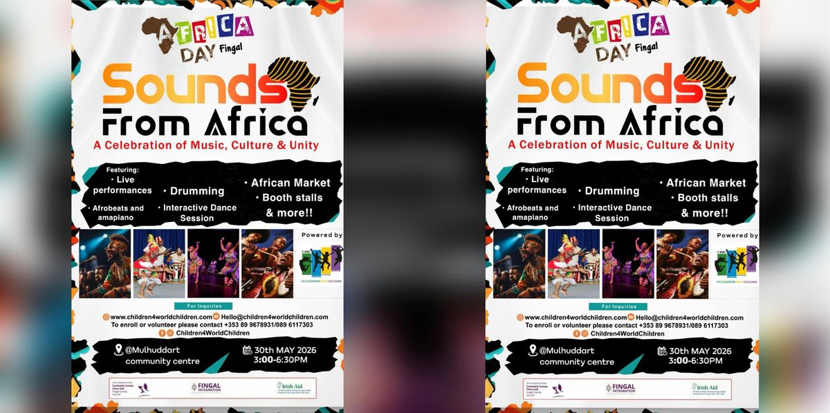 In celebration of Africa Day Fingal 2026, Children 4 World Children (C4WC) International proudly presents “Sounds from Africa”, a vibrant cultural event dedicated to celebrating the diversity and global influence of African music. This year’s celebration highlights the richness of African musical traditions and contemporary sounds, while promoting cultural exchange, community wellbeing, and unity among diverse communities in Ireland.