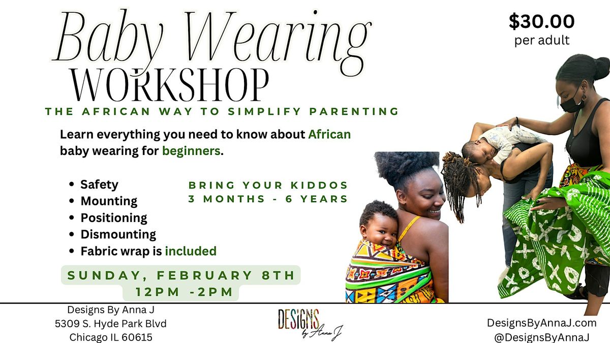 Welcome to the African Baby Wearing Workshop hosted by Anna J! Join us for an afternoon of learning and bonding with your little one. This in-person event will take place on Sunday, May 4, 2025 at 1:00pm in our cozy storefront.