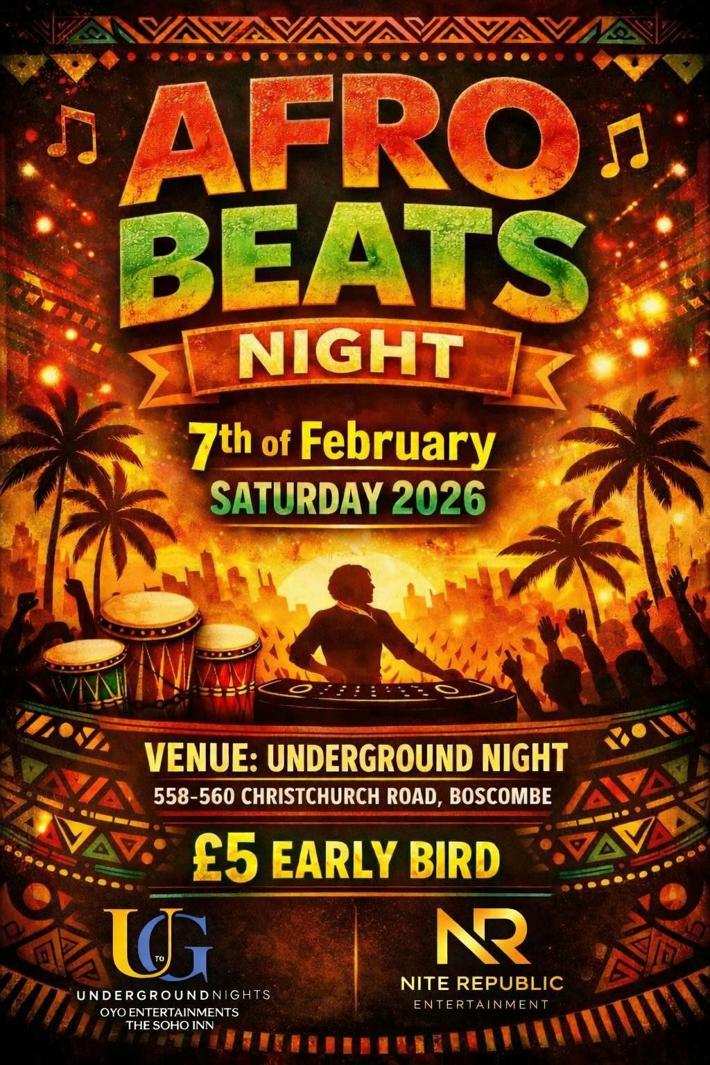 π₯ AFRO BEATS NIGHT π₯π Saturday 7th February 2026