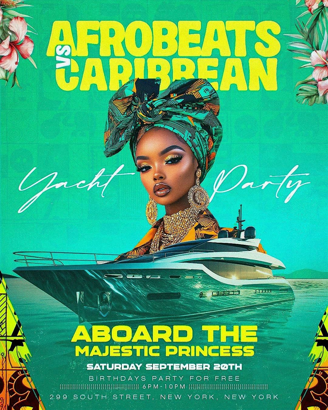 Join us aboard the Majestic Princess Yacht for an unforgettable Afrobeats & Caribbean On the Sea Sunset Yacht Party! ?? Immerse yourself in the best Afrobeats hits as we sail through the stunning Hudson River, taking in breathtaking views of the Manhattan skyline at sunset! With NYC’s top DJskeeping the energy high all night long, this is the perfect evening to vibe, dance, and celebrate in style! ???