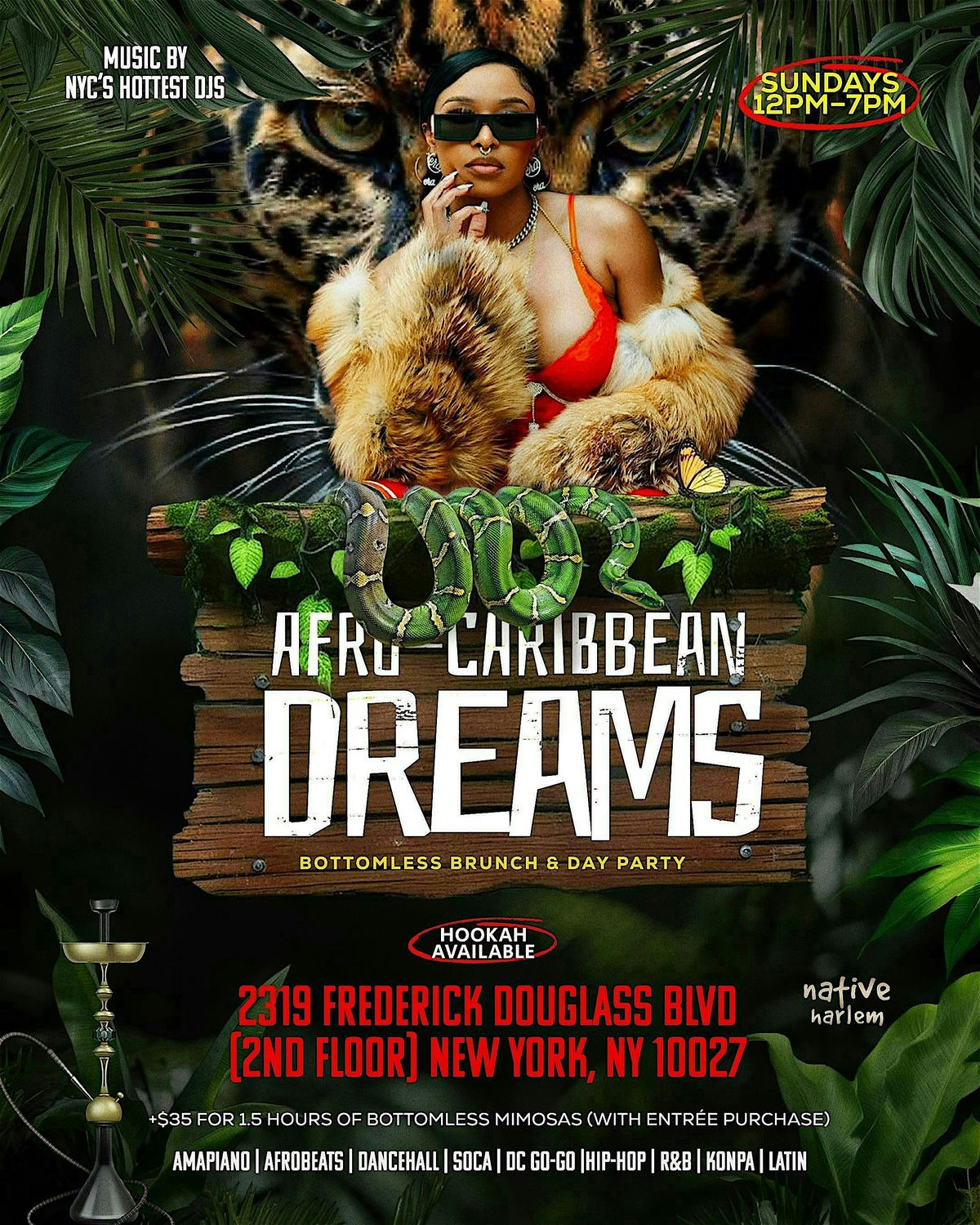 Brunch meets day party with Afro-Caribbean flavors, bottomless mimosas, top DJs, hookah, and nonstop good vibes from noon to seven.About this Event