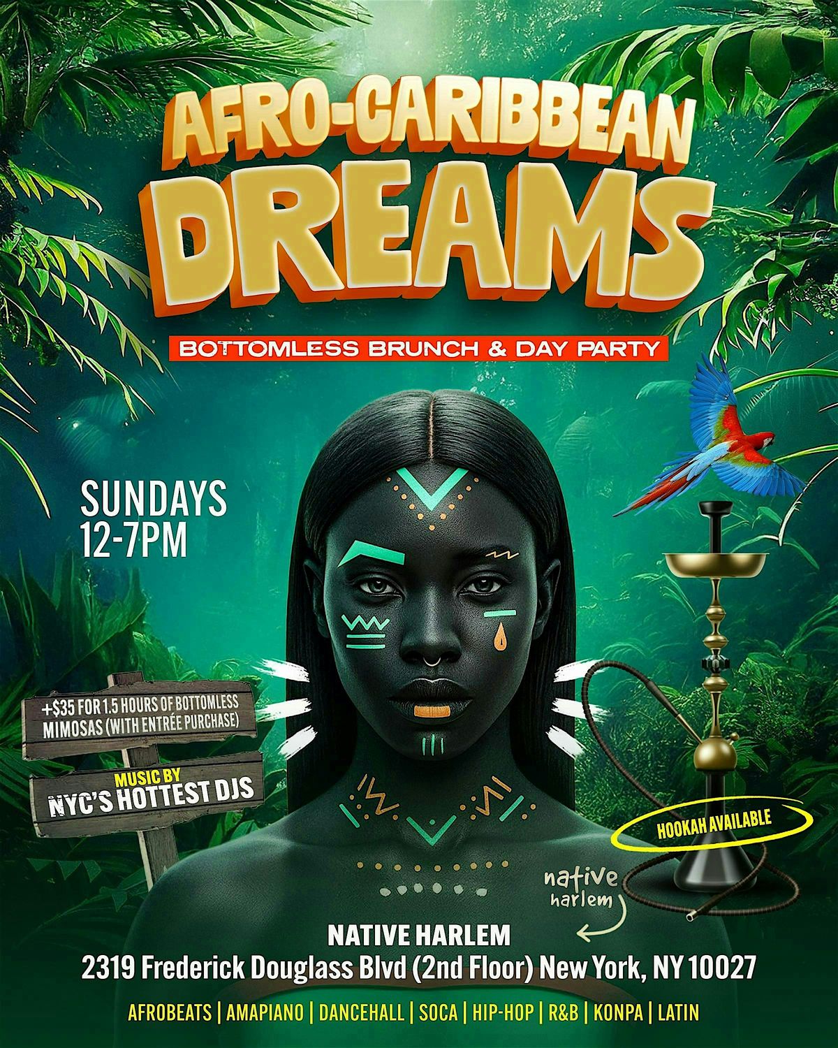 Brunch meets day party with Afro-Caribbean flavors, bottomless mimosas, top DJs, hookah, and nonstop good vibes from noon to seven.About this Event