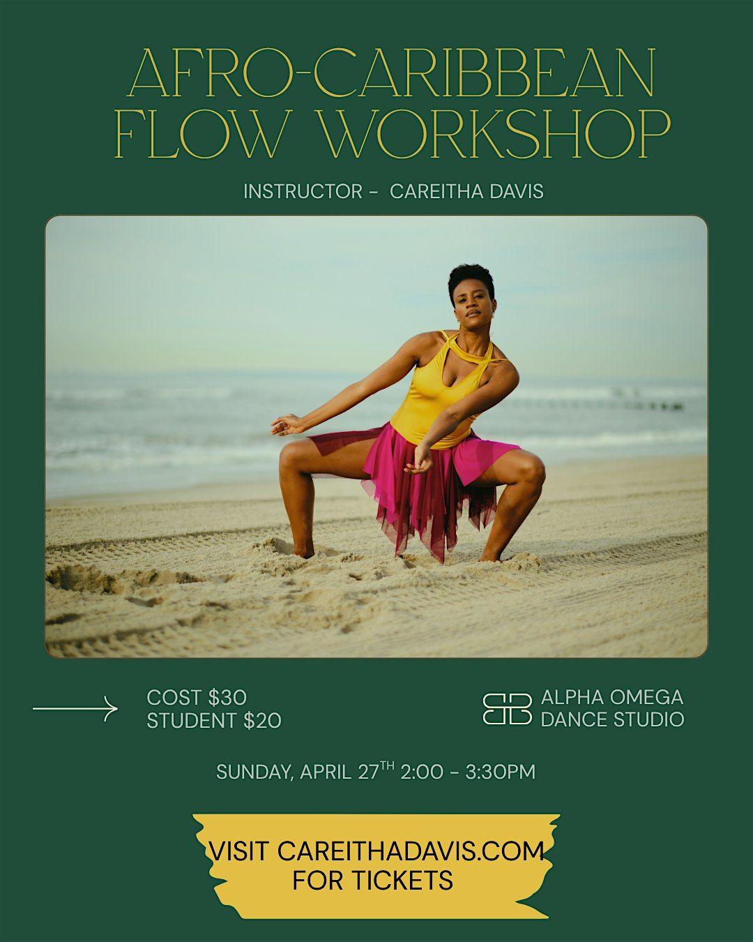 Afro-Caribbean Flow is a movement practice that blends the rhythms and grounded energy of Caribbean dance form of soca and dancehall with the fluidity and exploration of contemporary dance. It emphasizes musicality, release, connection, and the freedom to move between cultural awareness, body expression and improvisation.