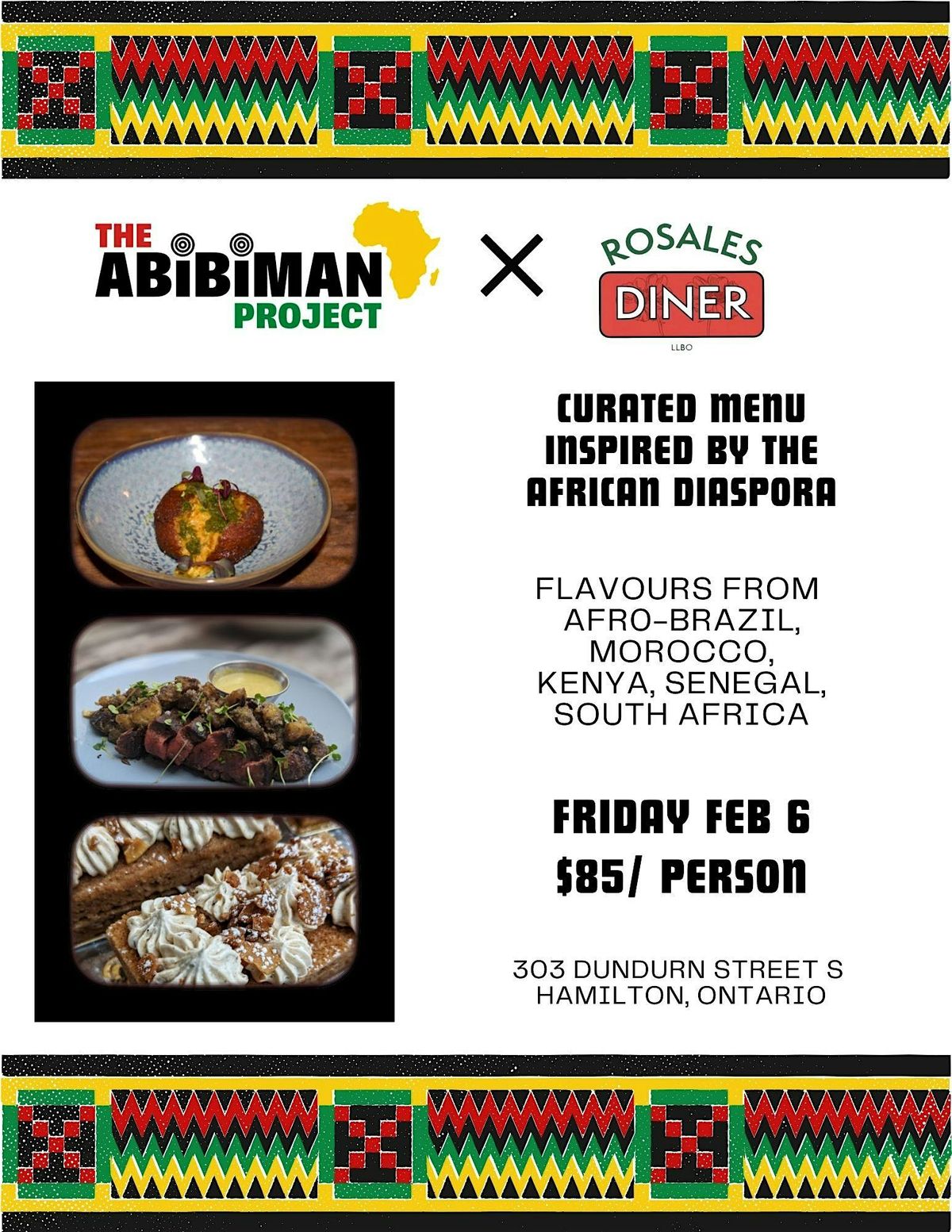 Join us for a one-night-only dinner at @rosalesdiner, where we will bring our unique African flavors to life! Enjoy a 5-course menu featuring dishes inspired by Afro-Brazil, Morocco, Kenya, Senegal, and South Africa.