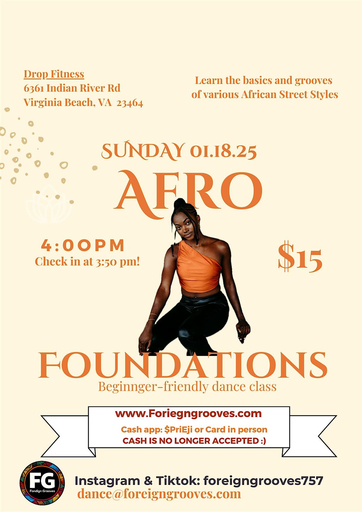 Join our Afro-Foundation dance class designed for all levels, including those who have never danced before, who want to move, groove, and express themselves in a welcoming space. Explore the rich rhythms and styles of Afro-dance while learning foundational moves at your own pace. This class is the perfect way to destress, try something new, and reconnect with your body through music and movement. Come have fun, build confidence, and be part of a vibrant, supportive community! No dance experience needed, just bring your energy!