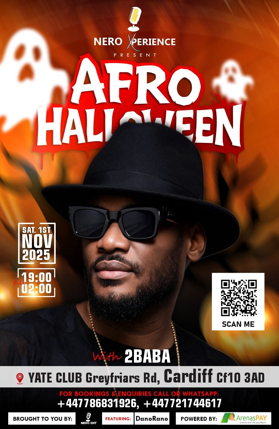 π» A Spooky Halloween Night with 2Baba (2Face Idibia) β Cardiff πNERO XPERIENCE present a Halloween like no other! On 1st of November, Cardiff comes alive with the legendary 2Baba (2Face Idibia) for a night of Afrobeats, live performances, and unforgettable energy. Get ready for a thrilling fusion of music, mystery, and Halloween magic! π€π₯