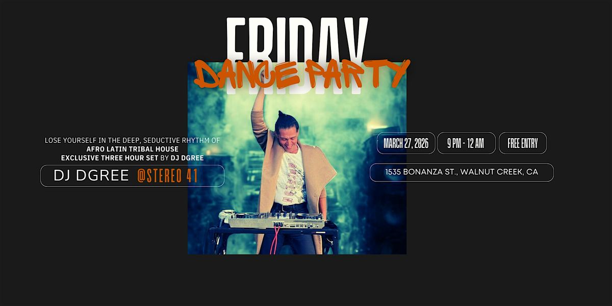 Get ready for an unforgettable night of Afro Latin Tribal House vibes with DJ DGree spinning live at Stereo41! Join us on March 27, 2026 at 9:00 PM -12:00 AM for beats that will keep you moving all night long. Bring your friends, your energy, and your love for great music. This is the place to be if you want good tunes and a chill, fun atmosphere. Don’t miss out!
