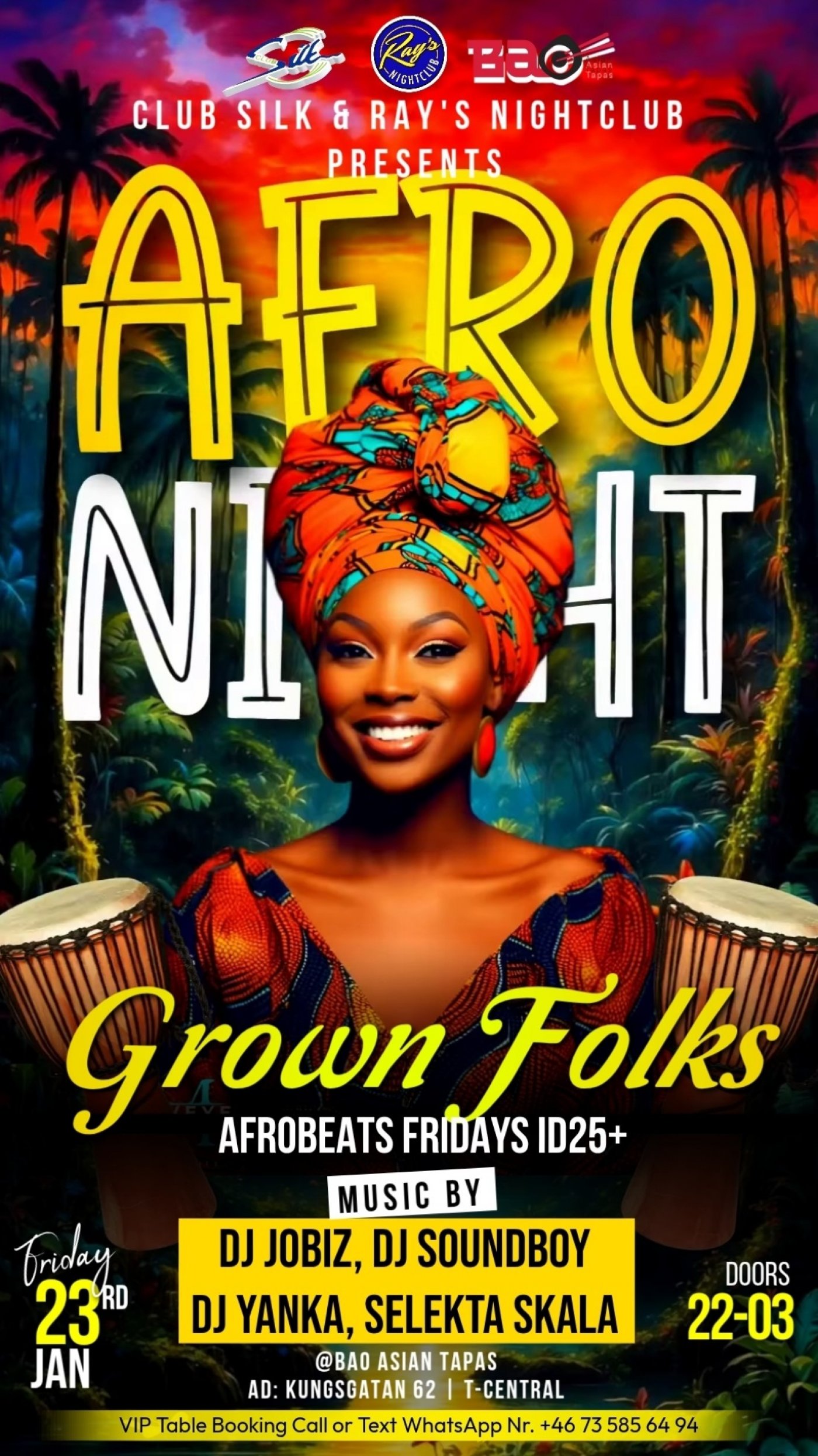 Embark on a journey of rhythm and connection at AFRO NIGHT GROWN FOLKS FRIDAYS. Book your tickets today and be part of a night to remember!