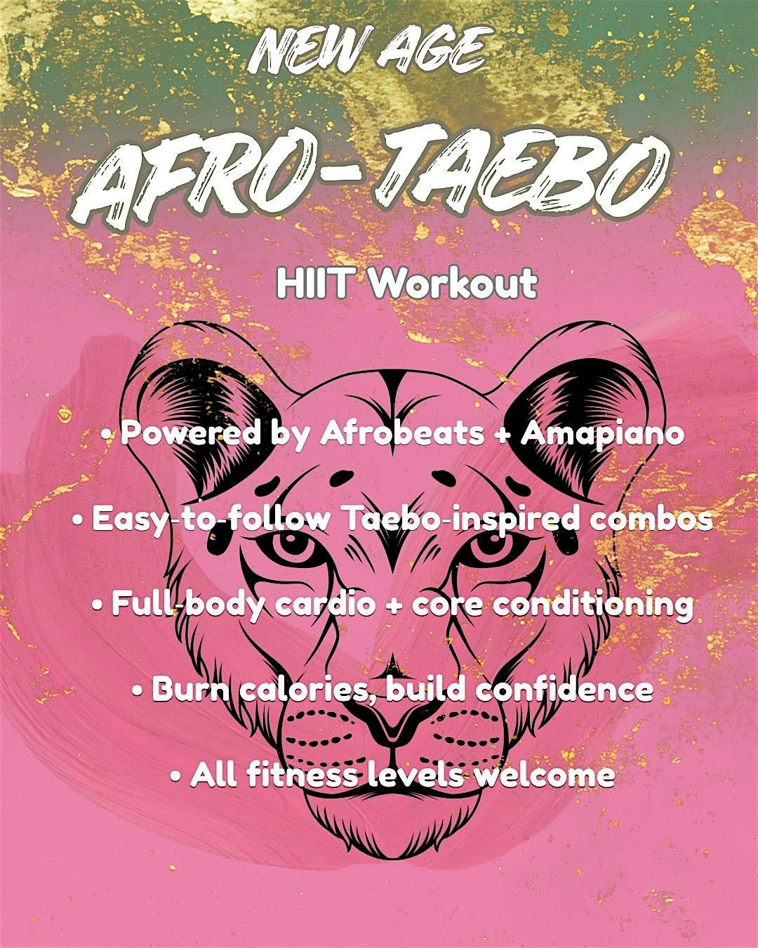 Afro‑Taebo HIIT is a high‑energy, rhythm‑driven workout that fuses Afrobeats, Amapiano, Taebo, and HIIT into one powerful, sweat‑soaked experience. This class is designed for every body whether you’re building strength, boosting endurance, or just craving a fun, confidence‑boosting way to move.