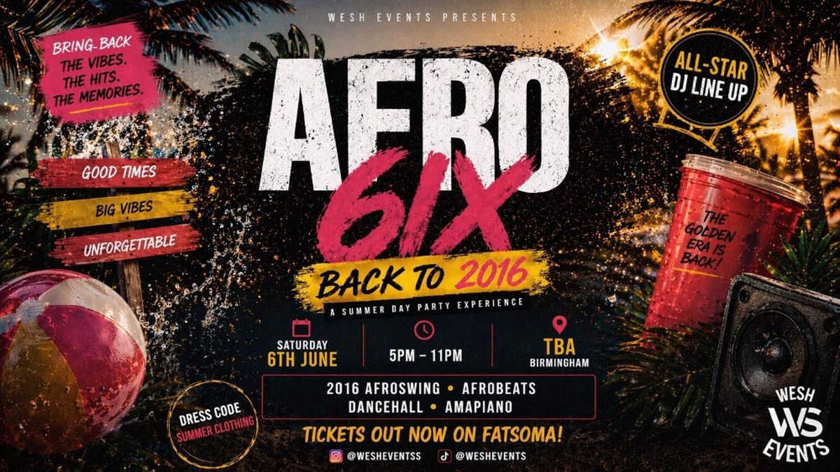 ๐ฅ AFRO6IX: BACK TO 2016 โ DAY PARTY ๐ฅ Weโre taking it all the way back to 2016โฆ the era of real vibes, timeless hits and unforgettable energy. If you know, you know. This is an Afroswing throwback vibes from start to finish โ good music, good people, no stress.