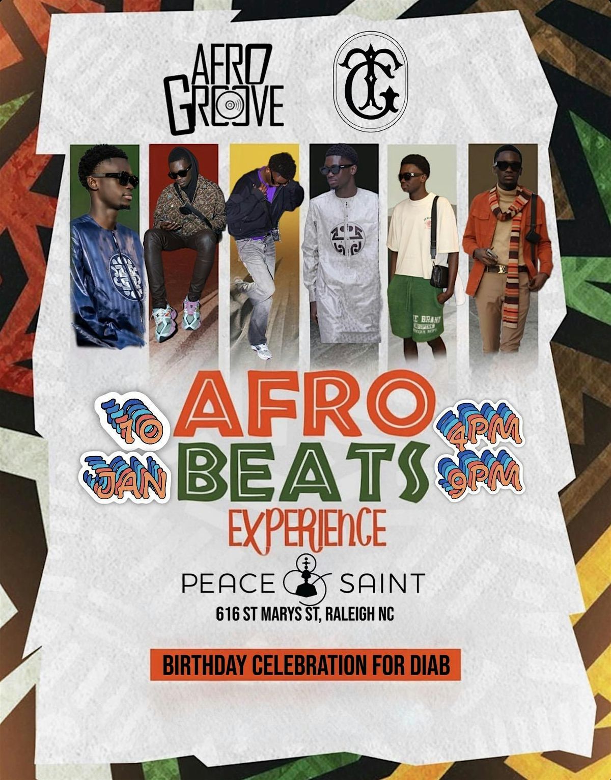AFROGROOVE IS BACK !! HIGH ENERGY MUSIC FROM ALL AROUND THE WORLD ! Come Enjoy Premium Drinks And Hookah Downtown Raleigh At Peace And Saint