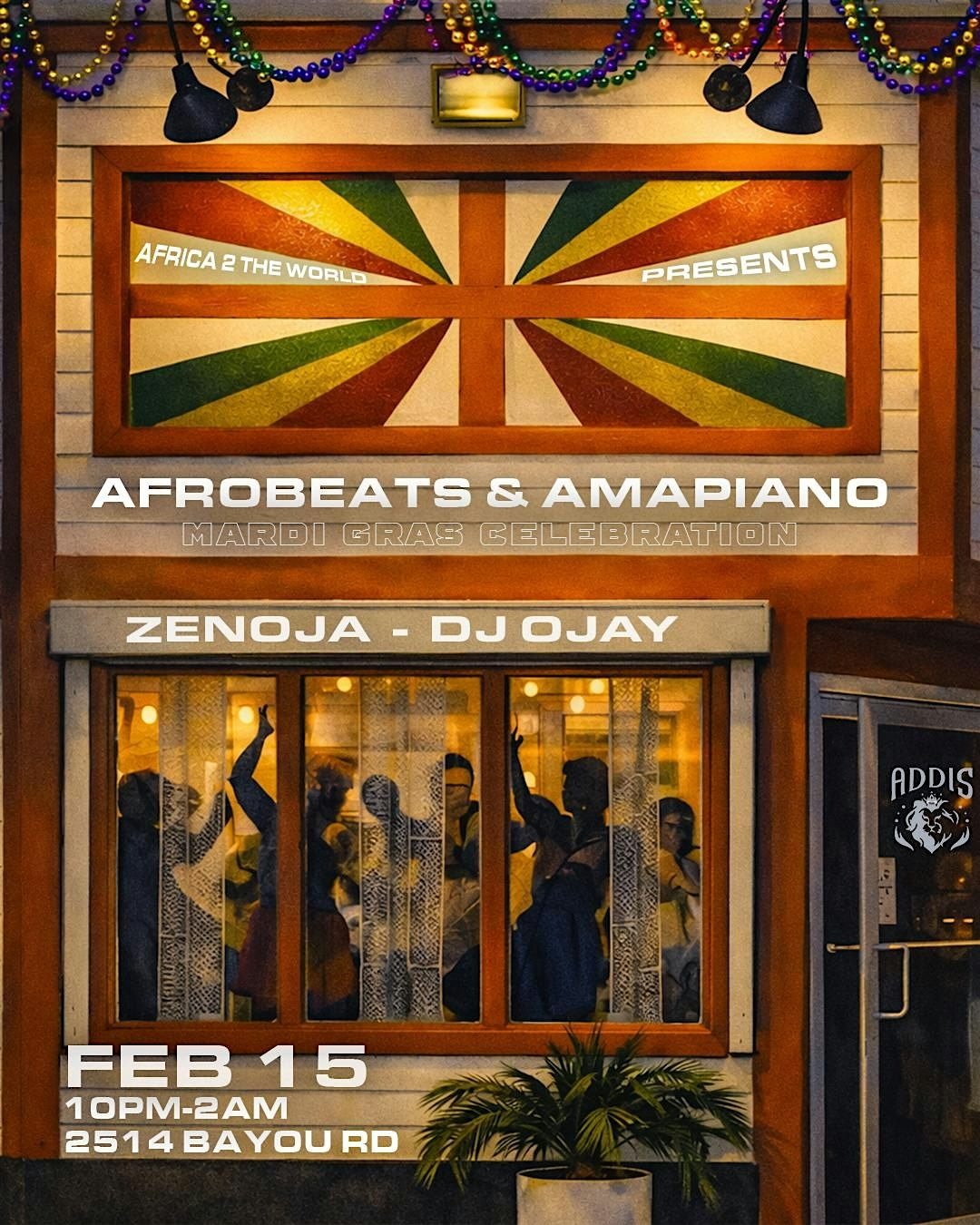 It's that time of year!!! Africa 2 the World is back for their 3rd annual Mardi Celebration! This year we will be partnering with Michelin Guide featured, ADDIS NOLA. The party will be featuring Afrobeats & Amapiano DJ's Zenoja and DJ OJAY of Afrobeats NOLA