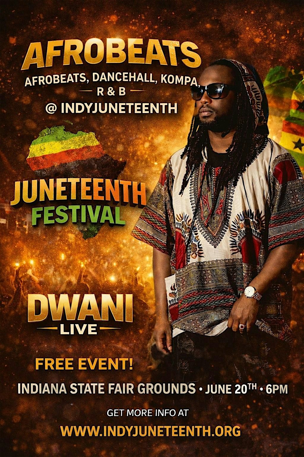 Celebrate Juneteenth with Afrobeats, Dancehall, Kompa & R&B at Indiana State Fairgrounds featuring a live performance by DWANI.