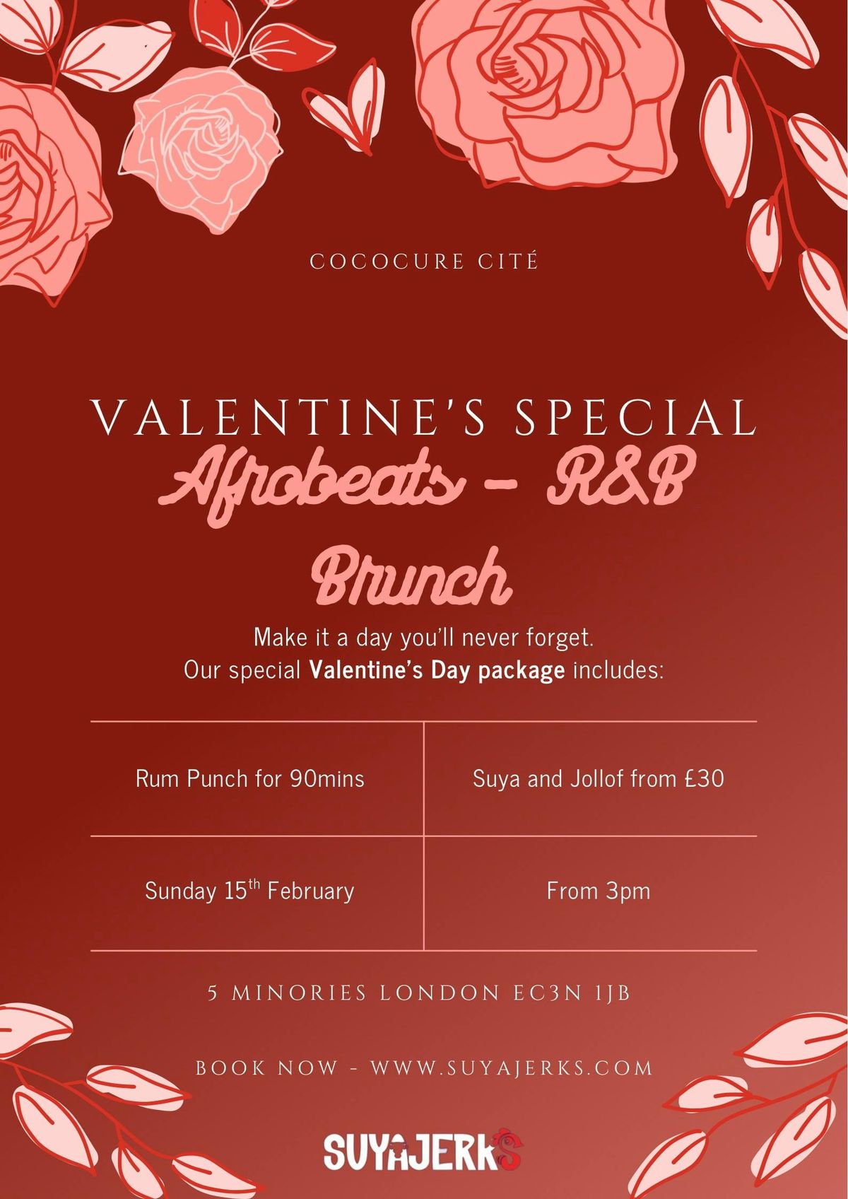 Indulge in an unforgettable Valentine’s experience at Cococure Cité.This exclusive Afrobeats & R&B Brunch blends refined ambience, soulful sounds, and exquisite flavours for a truly romantic afternoon. Sip on 90 minutes of expertly mixed rum punch while savouring rich suya and jollof dishes, all set against a backdrop of smooth Afrobeats and R&B. Designed for those who appreciate luxury, connection, and celebration, this is Valentine’s done beautifully.