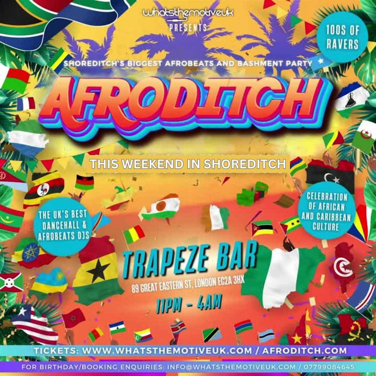 Get ready and join 100s of people for AFRODITCH, the ULTIMATE AFROBEATS & BASHMENT Fusion Party. This will be a SOLD out experience like none-other as we prepare the WILDEST Club Night in the heart of Shoreditch.