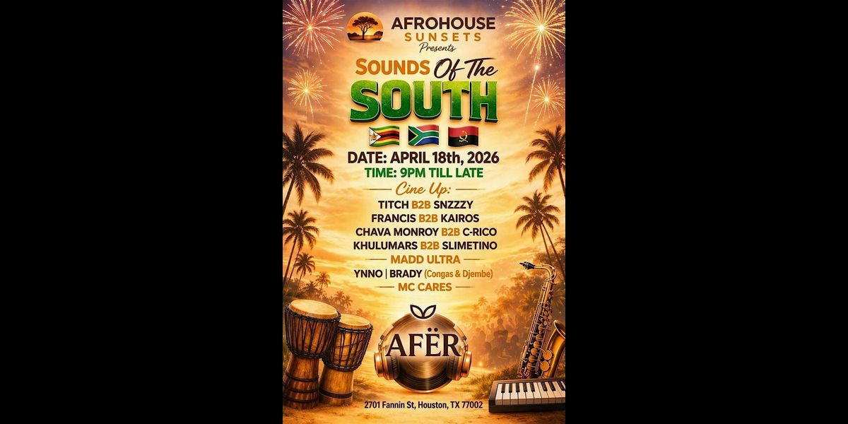 Get ready to vibe in person with AFROHOUSE SUNSETS as we bring you SOUNDS OF THE SOUTH. An epic night filled with rhythm, energy, and good times.