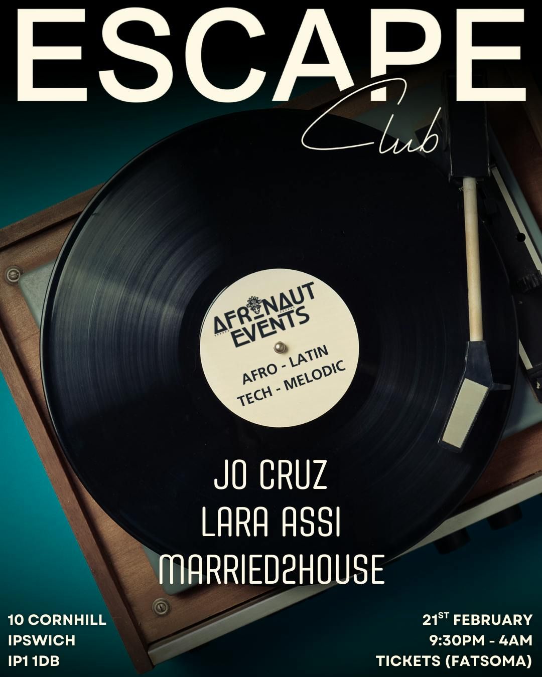 AfroNut Events land at Escape Club for their second showcase, bringing a special night of carefully curated sound and atmosphere.On Friday 21st February, AfroNut returns to Ipswich with a refined musical journey, blending Afro House, Latin grooves, Melodic and Tech influences into one seamless experience. Following the success of their first showcase, this second edition promises deeper rhythms, stronger energy and an even more immersive dancefloor experience.