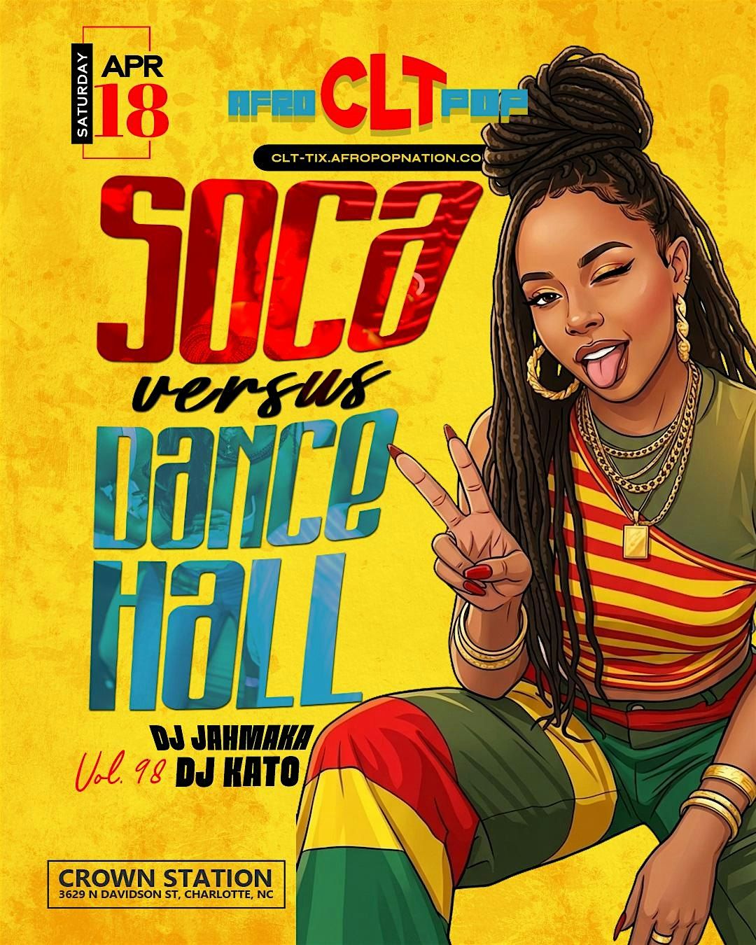 "The last one was so good, we had to "run di ting back"! Welcome to PART 2 of our Soca vs. Dancehall edition of AfroPopCLT happening Saturday, April 18th @Crown Station (NODA)!