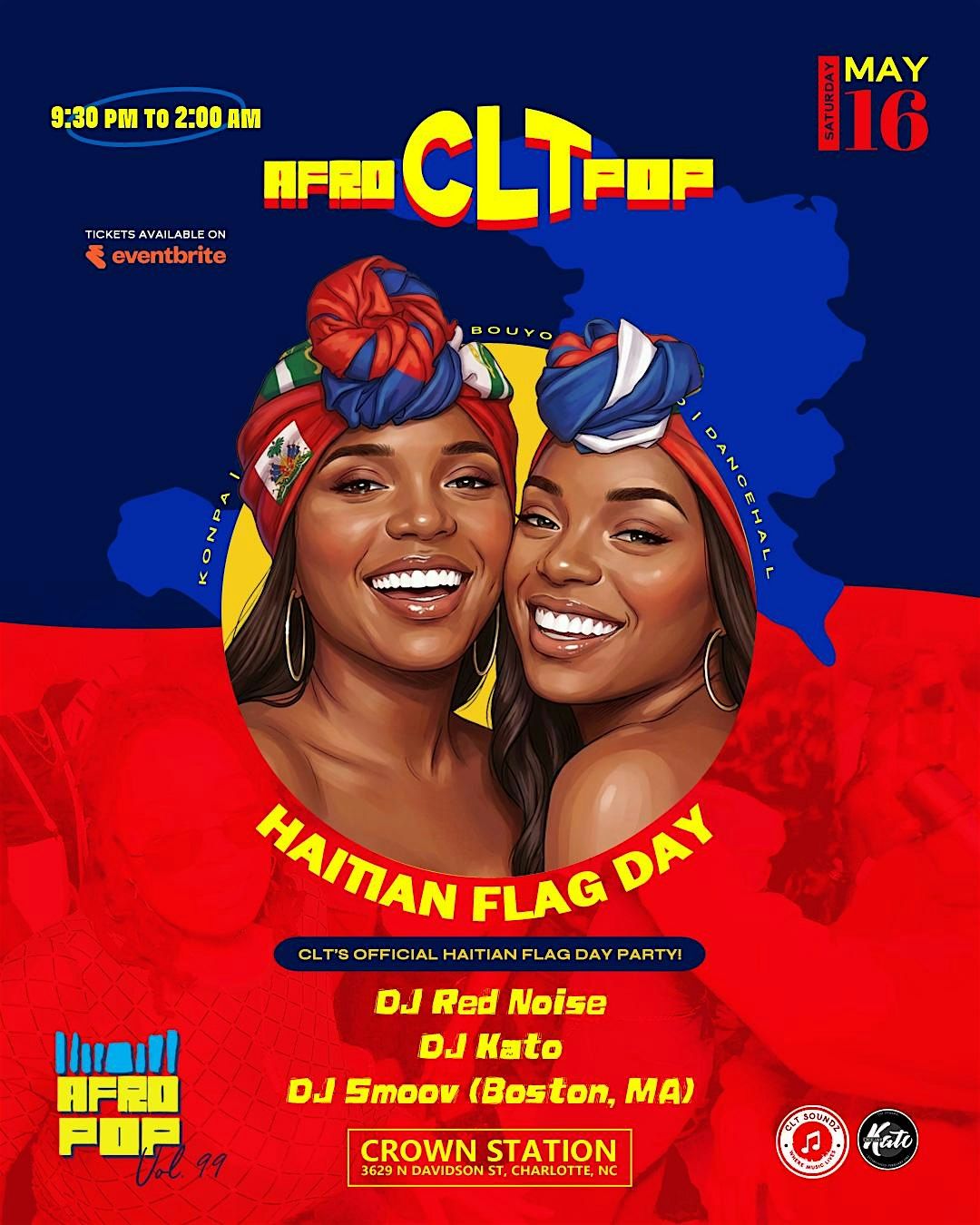 Celebrate "Haitian Flag Day Weekend" with the tribe as we partner with CLT Soundz this year! Charlotte's official Haitian Flag Day party goes down Saturday, May 16th at Crown Station (NODA).