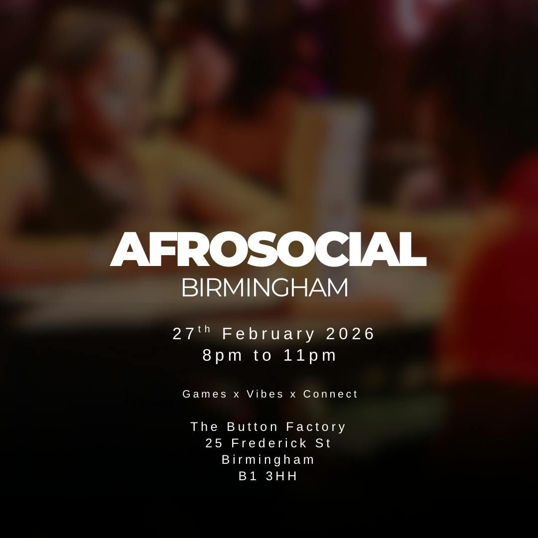 Step into a night built for pure vibes, big laughs, and unforgettable connections. AFROSOCIAL Birmingham is bringing the community together for an electrifying Games Night packed with energy, culture, and friendly competition.Expect a lively mix of classic favourites and crowd‑pleasing challenges — from UNO battles and Connect 4 showdowns to Jenga towers, card games, and interactive group games that get everyone involved. Whether you're coming to win, unwind, or meet new people, this is the place to be.