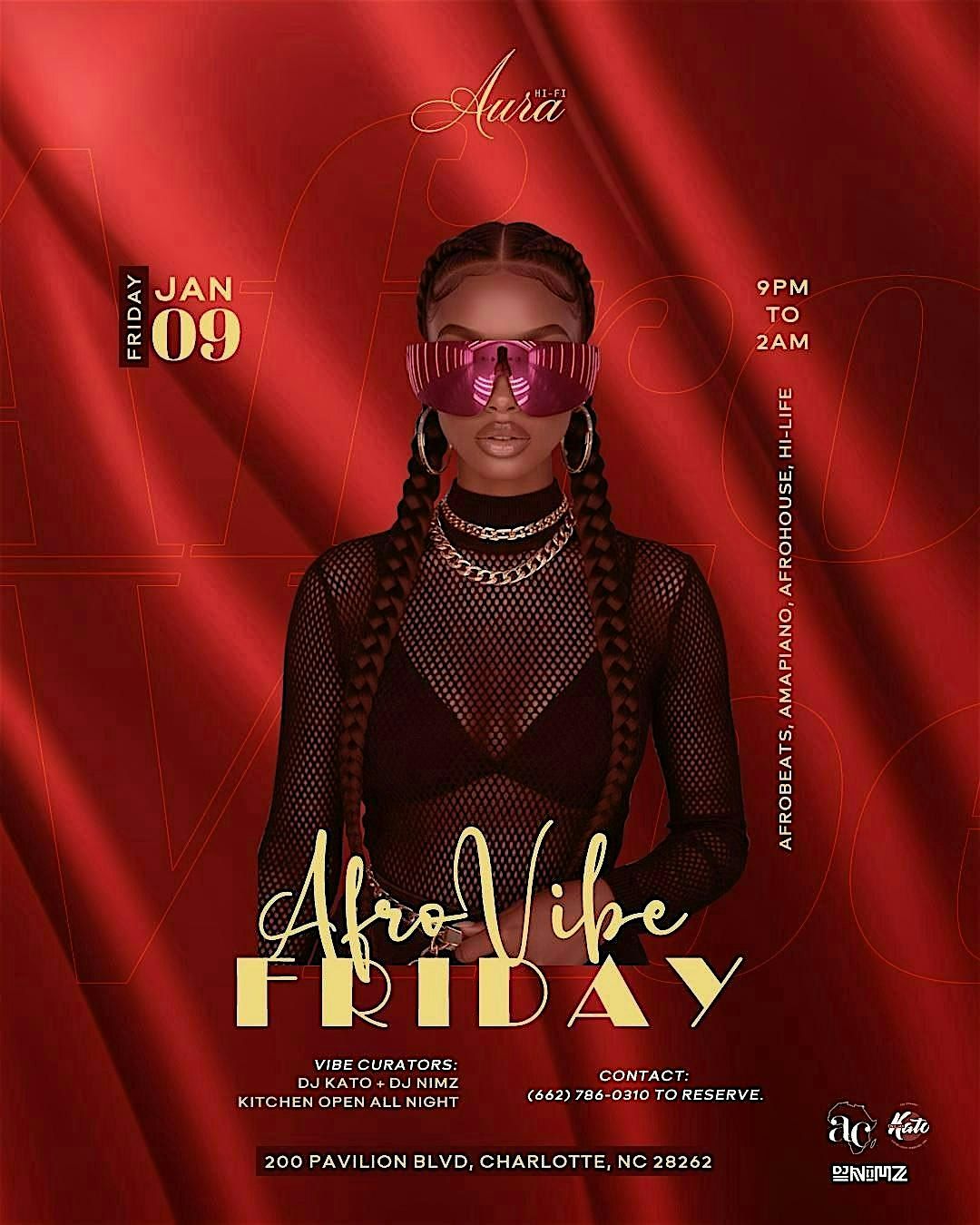 CLT's sexiest Afro-fusion nightlife experience is back.. AfricanaConnections + Aura.Hifi presents the next edition AfroVibe Friday at the luxurious AURA.Hifi nightclub happening Friday, January 9.