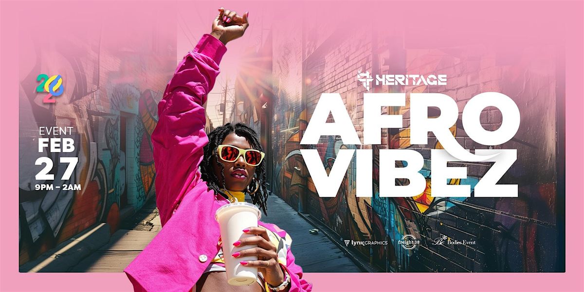 LEGAL: As a condition of your attendance at AfroVibez, you agree and irrevocably consent to your image and/or likeness being captured on film and or video, the benefit of which shall vest in Heritage Productions LLC, its licensees, successors and assigns, and may be distributed throughout the world in perpetuity, without limitation. All sales are final. With RSVP and/or ticket purchase, you agree to receive communications from Heritage Productions LLC.
