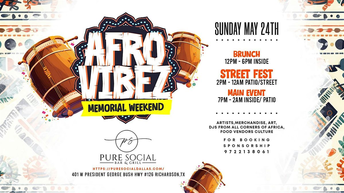 Get ready to groove at the AFROVIBEZ STREET FEST SUNDAY MEMORIAL WEEKEND - a celebration of African culture and music!