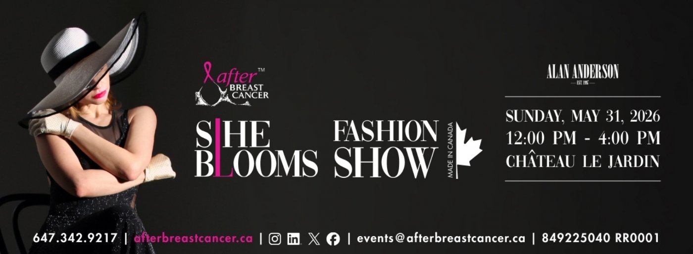On May 31, the after BREAST CANCER S|HE Blooms Committee invites you to an unforgettable afternoon of fashion, inspiration, and community at the elegant Château Le Jardin Mansion, 8440 Hwy 27, Woodbridge, ON L4H 0A7.