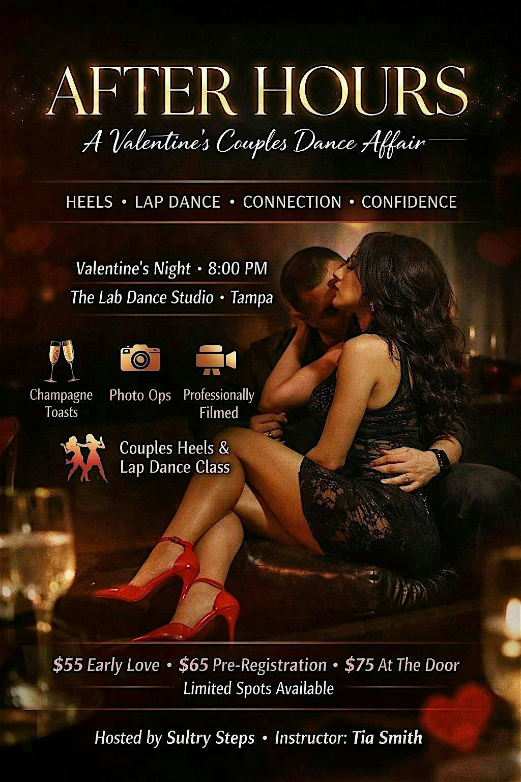 After Hours is a sensual, confidence-boosting couples dance experience created for partners who want to connect, move together, and try something new in a fun and supportive environment.