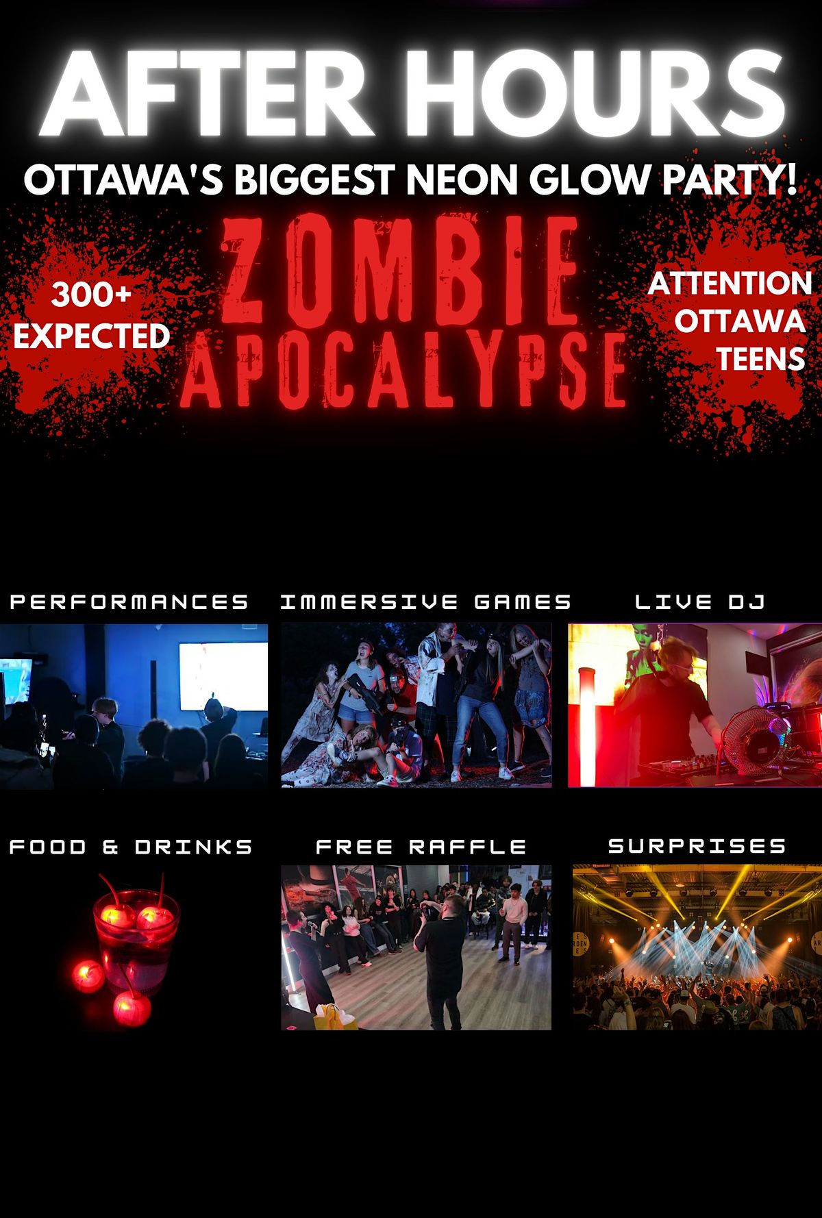Get ready, Ottawa/Gatineau teens! 💥After Hours returns with Zombie Apocalypse, a neon glow night full of excitement, music, and immersive chaos. Dance performances, live singers, and a DJ will keep you moving, while games like karaoke, truth or dare, and interactive prizes keep the energy high (there's a bar this time!🍺)
