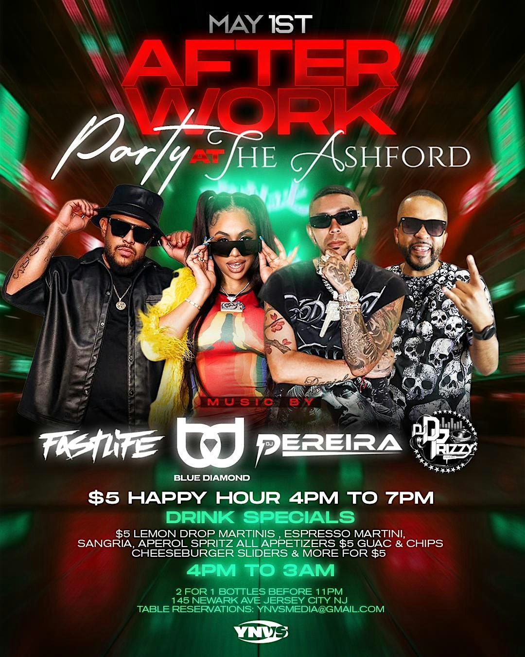 Join us at The Ashford in Jersey City for the ultimate After Work Party this May 1st.