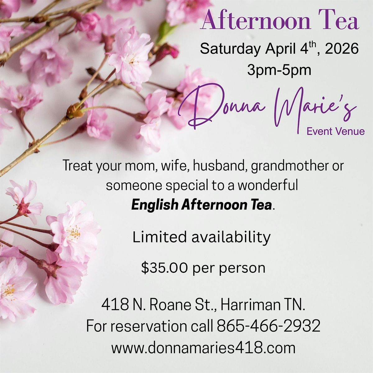 Indulge in a delightful English Afternoon Tea experience with your friends, spouse, mother, grandmother, or daughter. This charming gathering features an assortment of sandwiches, scones, and delectable treats, perfect for enjoying quality time together.