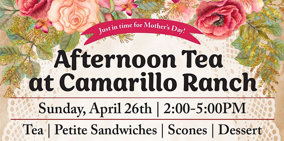 Join us for afternoon tea at the Camarillo Ranch just in time for Mother's Day! Tickets available now. Enjoy an historic tour of Camarillo Ranch House, a drawing, and silent auction.