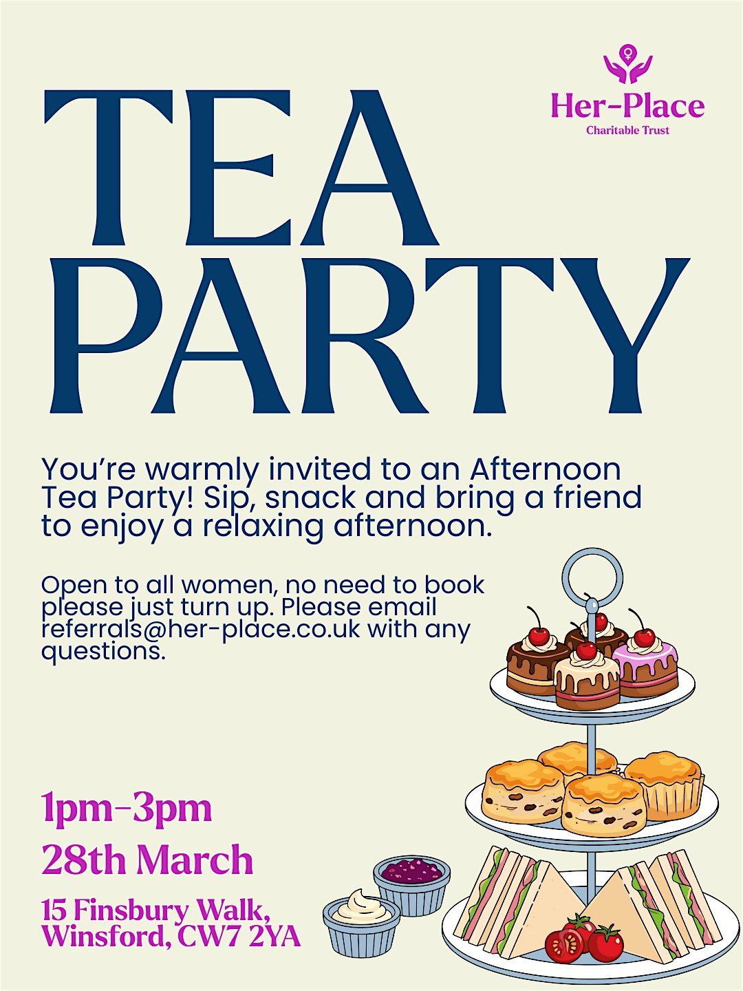 You’re warmly invited to an Afternoon Tea Party! Sip, snack and bring a friend to enjoy a relaxing afternoon.