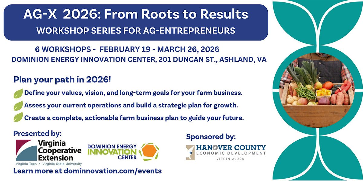 This 6-week evening series presented by Virginia Cooperative Extension and DEIC is designed to help agricultural producers and farm-based businesses turn ideas into a practical, sustainable business plan. Beginning February 19 and running through March 26, 2026, participants will meet weekly on Thursday evenings from 5:30–7:30 pm to clarify their values and vision, assess their current operation, and develop clear mission statements and goals. Each session builds on the last—covering marketing, operations, human resources, and financial planning—while including tools like SWOT analysis and long-term risk evaluation. By the end of the course, you’ll walk away with a complete, ready-to-implement business plan, action steps, and systems for tracking your progress and guiding future growth.