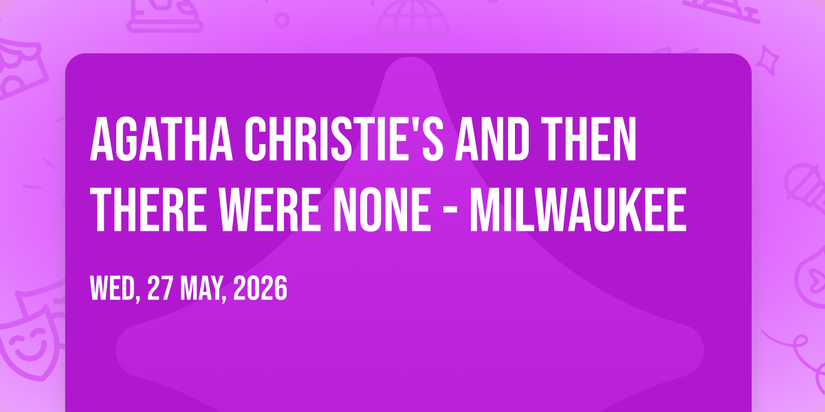 📍 Location: 43.0407, -87.9111✨ Embark on an extraordinary journey at Agatha Christie's And Then There Were None - Milwaukee, where every moment promises to be unforgettable! 🌟 Imagine of transforming Milwaukee Repertory Theater in the heart of Milwaukee, WI into a realm of endless possibilities. 📅 Join us on June 28th, 2026 at 07:00 PM for an experience that will challenge your imagination and exceed your expectations. 🎯 This carefully curated event combines the finest elements of entertainment, innovation, and community spirit. Whether you're an adventure seeker, culture enthusiast, or someone looking for unique experiences, this event offers something special for everyone. 🎊 Don't miss this chance to be part of something extraordinary!