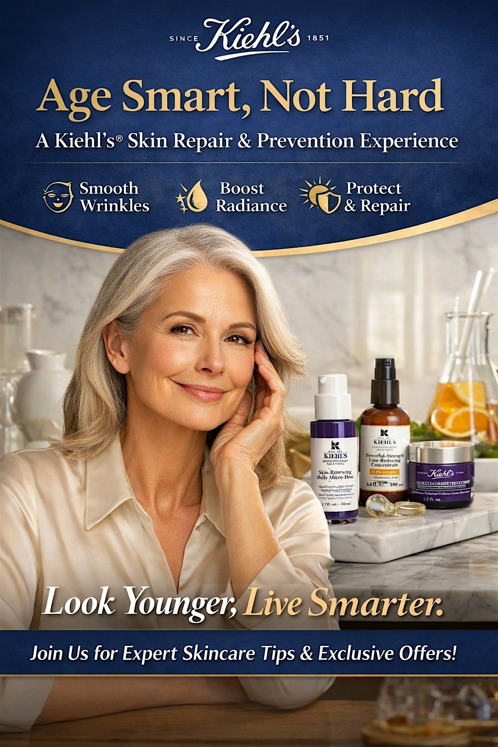 Join us for an exclusive Kiehl’s® Skin Repair & Prevention Event, designed especially for those who want to protect, strengthen, and rejuvenate their skin with dermatologist-inspired solutions backed by science.