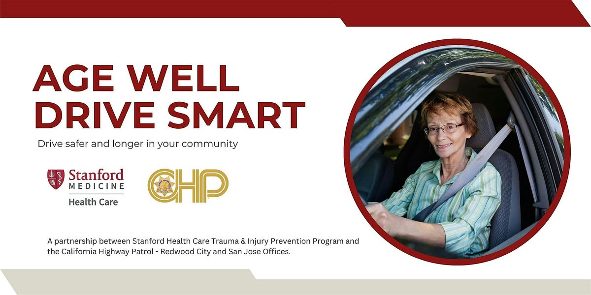 Stanford Health Care Trauma & Injury Prevention Program is partnering with the local California Highway Patrol to offer a FREE traffic safety program for mature drivers, 65 years of age and older. The Age Well, Drive Smart program is designed to provide older adult drivers with the keys to drive safer and longer in their community. This class is co-presented by a CHP officer and CHP Senior Volunteers. The curriculum addresses the following topics: