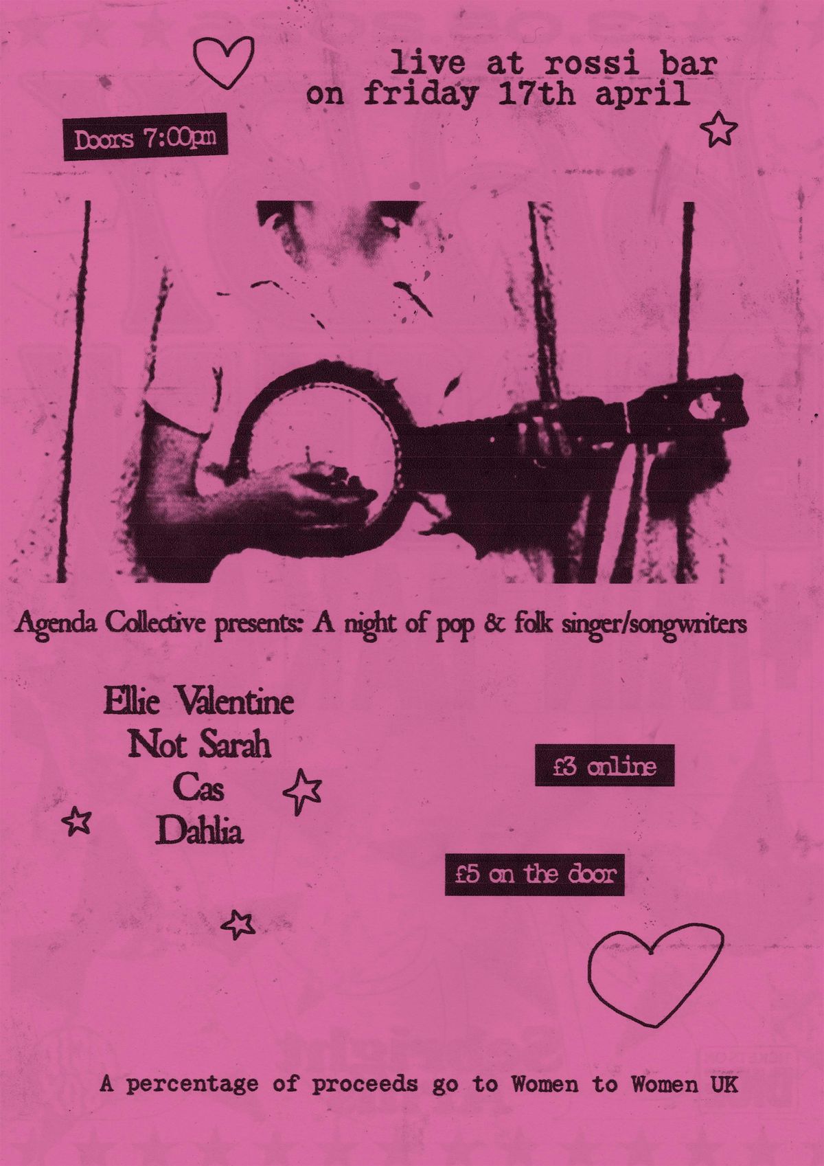 Come join us for a wonderful night of music at Rossi Bar with music from Not Sarah, Cas, Ellie Valentine and Dahlia